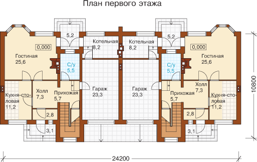 Проект блокированного типа коттеджа